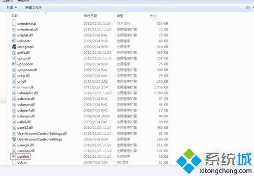 5、在弹出的页面找找看有没有“userinit”文件,如果找不到,鼠标右键添加一个“userinit.exe”放进去,保存。