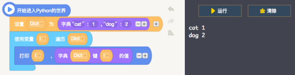 控制中的遍历积木,不仅可以遍历序列、列表,还可以遍历字典
