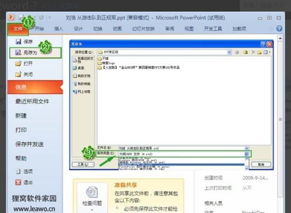 单击“文件”-“另存为”,在"保存类型"列表框里选择存为"rtf"格式。然后使用Word打开刚刚保存的rtf文件,再编辑即可将ppt转换成word。