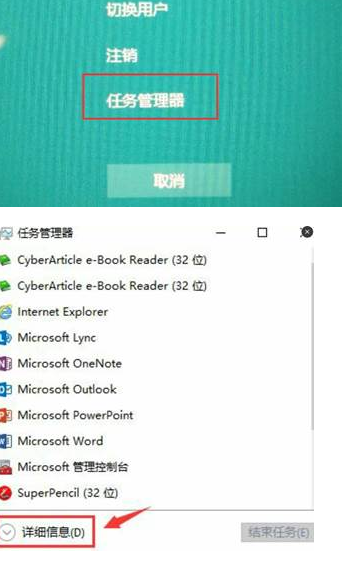 1、按“ctrl+alt+del”组合键,调出任务管理器,点击“详细信息”;