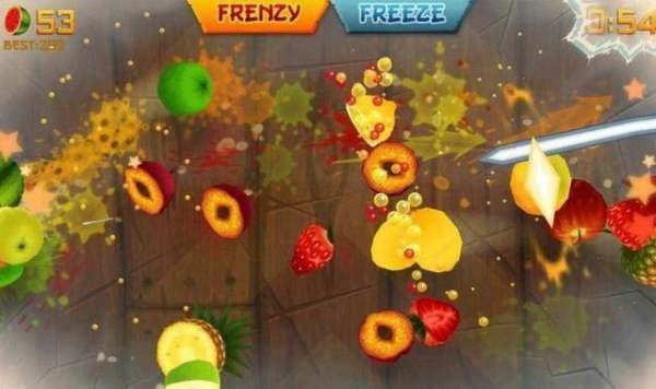 二、《水果忍者》:这款游戏最早在2010年发布,操作简单但极考验人的反应能力。到2011年最为火爆,几乎每个智能触屏手机里都有这款手机游戏。