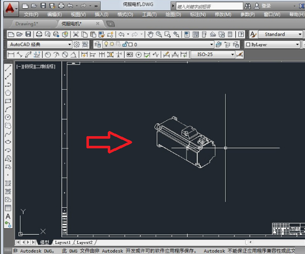 7、用CAD打开刚刚保存的文件,就出现了工程图。完成以上设置后,即可将solidworks中的三维图转化成工程图。