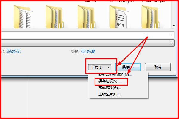 3.单击弹出式“另存为”菜单右下角的工具下拉菜单,并选择“另存为”选项,如下图。