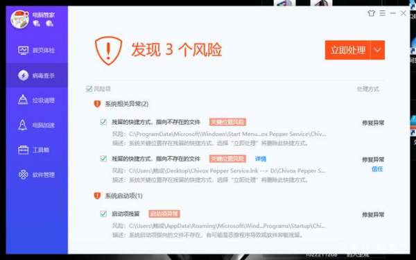 随着电脑的运行和软件的使用,电脑中会产生许多缓存文件或下载文件,如果不及时清理的话,同样会导致硬盘被大量占用。还有,电脑在上网或者在使用U盘的时候经常会发现电脑发生一些异常操作。这就很有可能电脑中病毒了。 其实这两个问题也很好解决,安装一个杀毒软件,可以使用杀毒软件清理垃圾和杀毒。但是杀毒软件下载一个就行,因为一般杀毒软件都是默认开机自启动,而且也不容易关闭,所以下载多个杀毒软件同样会导致电脑运行速度变慢。
