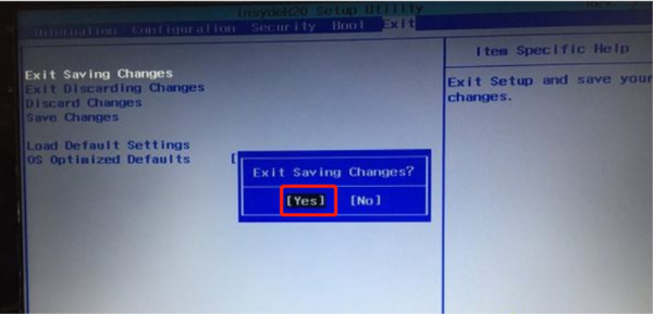 4、最后按“F10”选择“yes”选项进行重启电脑即可完成。
