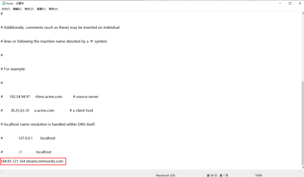 4.在文件的左下方添加“184.85.121.164 steamcommunity.com”保存文件后再把文件复制到原文件夹下。即可加速steam平台