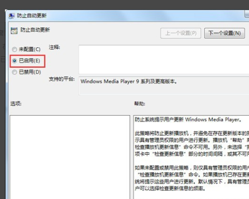5、之后在右侧窗口中找到“防止自动更新项”并双击打开,在打开的编辑窗口中,将默认设置更改为已启用,然后点击确定保存即可。