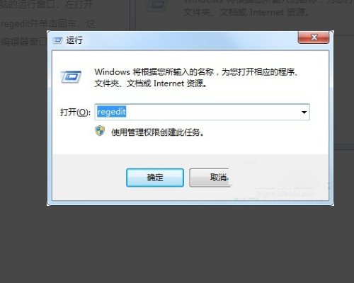 1、同时按下Win7旗舰版电脑键盘上的win+R快捷键打开电脑的运行窗口,在打开的运行窗口中,输入regedit并单击回车,这样就可以打开注册表编辑器窗口了。