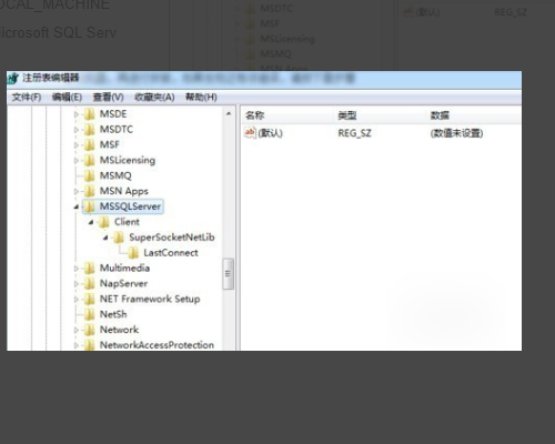2、在打开的注册表编辑器窗口中,点击展开左侧菜单中的HKEY_LOCAL_MACHINE\SOFTWARE\Microsoft\Microsoft SQL Server。