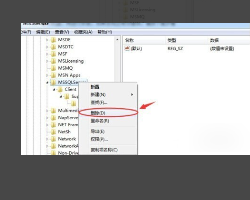 3、然后在这个Microsoft SQL Server选项上点击鼠标右键,选择删除。