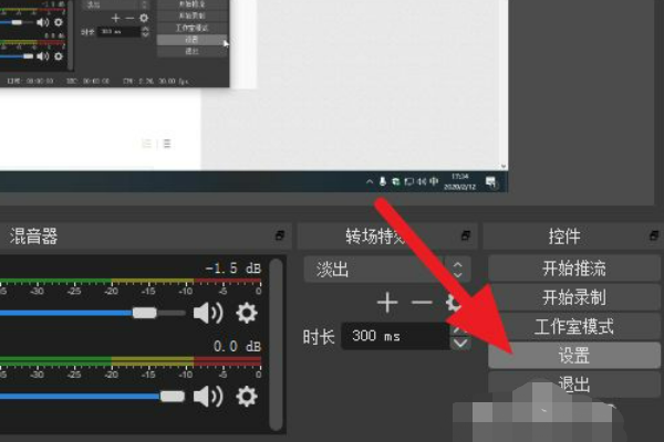 1、首先打开电脑上的OBS软件,进入OBS后点击界面右下角的【设置】按钮。