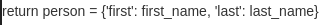 要注意 "person = {xxx}" 这是一个语句, 而非一个表达式, 和python中定义的return语法是相背的,所以不能这么写.