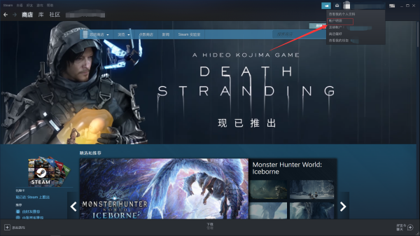 4、完成更改后接着退出steam再登录,在平台界面点击账户明细。