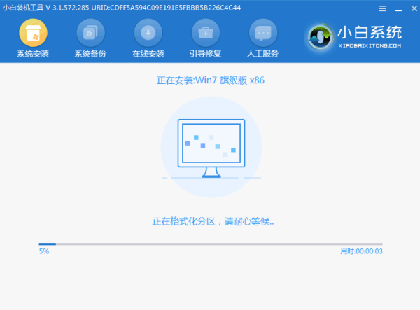 6、在 PE 系统中小白装机工具就会帮助我们进行安装系统,只需要根据提示操作即可。