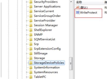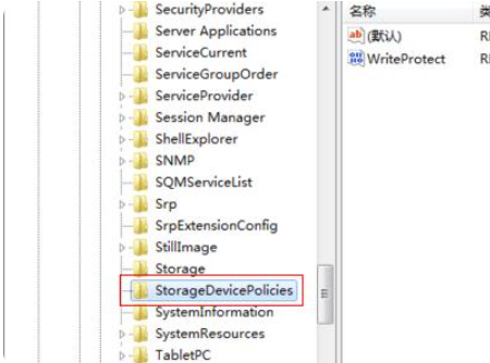3、进入注册表界找到StorageDevicePolicies展开,如下图所示: