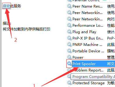 2、然后在打开的页面中,重新启动“Print Spooler” 服务,如下图所示。