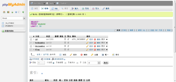 上面的bednumber是学生的床位,dornumber是学生的宿舍号,flag是学生属于哪位老师的标记。