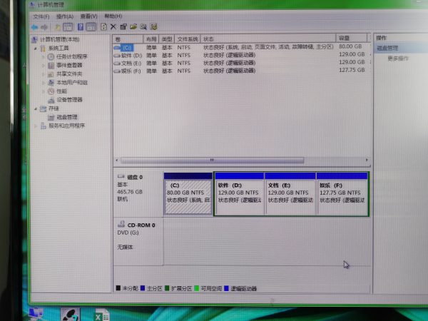 3.正常进入系统后可凭借我的电脑—管理——磁盘管理查看硬盘运行状态