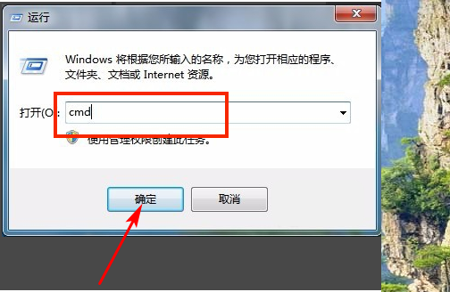 2、在打开的运行窗口中输入命令cmd,然后点击确定按钮。