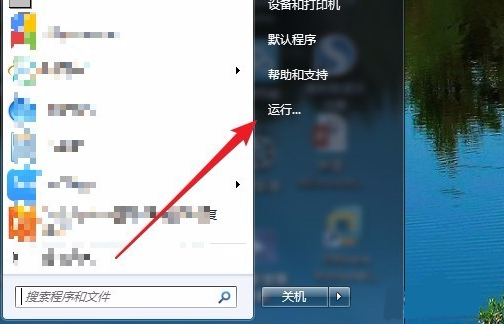 1、Windows7系统桌面,点击桌面左下角的开始按钮,在弹出的菜单中点击“运行”菜单项。