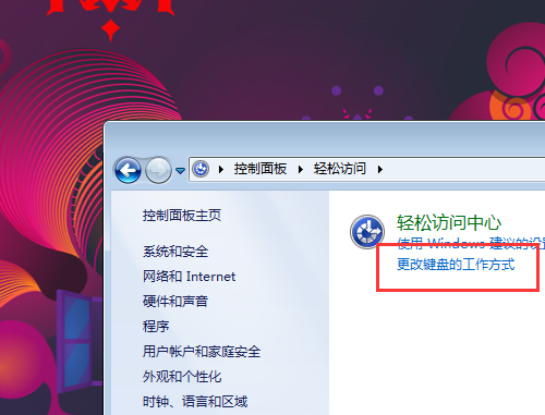 二、 接着找到“更改键盘的工作方式”,并点击打开该项。