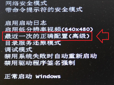5、如能进入安全模式,查看设备管理器中是否有驱动异常(黄色警示号的设备)开始▶重启▶再重启电脑,继续按F8键,此时可以使用上下键选择【“最后一次正确的配置”启动Windows】选项来解决。