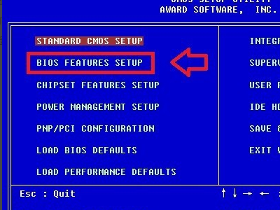 1、首先开机按键进入BIOS,进入启动项,选择硬盘启动。这样的菜单选择BIOS FEATURES SETUP选项。