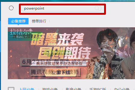 3、之后在该页面中在搜索框里输入“powerpoint”选项后按回车确定。