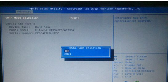 二、按回车键进入会见到SATA Mode Section,里面包含了AHCI和IDE两个选项,这时我们选择IDE选项 ,按回合键确定后再按F10进行修改设置保存。最后重新尝试进入到winpe系统就可以看到电脑硬盘了。