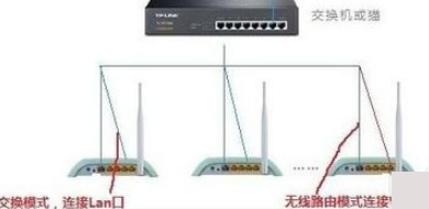 交换机接路由器,两种方法设置(多个路由器均这样设置): 第一种方法:动态IP方式 1、路由器插上电,先不要接交换机,把路由器复位(恢复出厂); 2、电脑连接路由器任一LAN 口, 进入设置页面; 3、按照动态I P方式设置; 4、然后再设置一下SSID、加密方式和密码; 5、保存、重启; 6、设置好以后,把交换机接出来的网线接在路由器的WAN口上。 第二种方法:无线AP方式 1、先将电脑连接路由器的LAN端口,把路由器的IP地址改了。例如多数的路由器地址都是192.168.1.1,我们只要将路由器IP地址改为192.168.1.10即可; 2、再在设置里将路由器的DHCP功能关闭; 3、最后将相关文章
