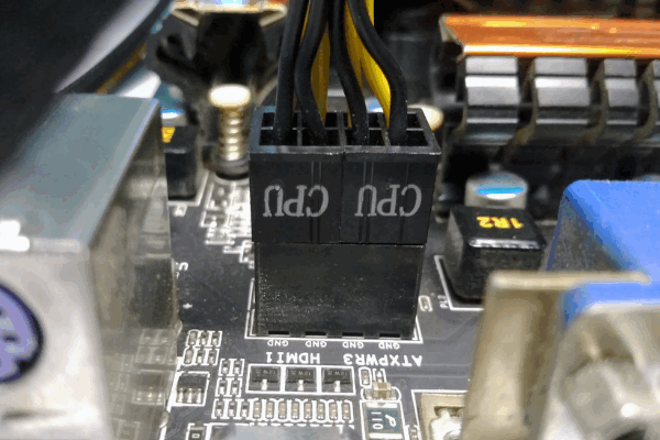 2、CPU供电线插口一般在靠近U的左上角,CPU的8PIN供电线都会有标识,但是很多人都很容易和显卡的8PIN搞混,其实很容易辨识,一般CPU都是4+4组成8,而显卡是6+2组成8。如果都是8PIN,表面也会有文字注明。如下图所示;