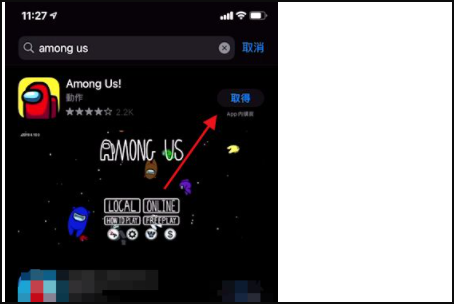 2、在应用商店里搜索among us,点击获取。