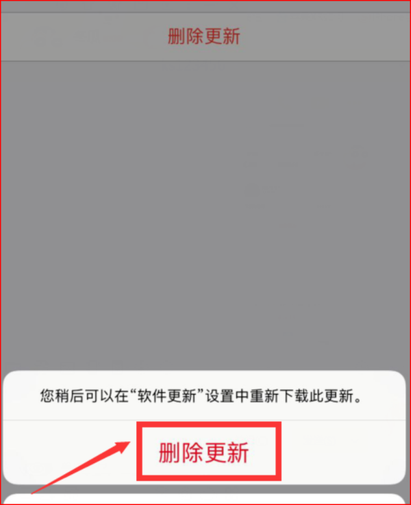 6、之后在新弹出界面,点击删除更新,苹果手机总是提示系统更新就关闭了。