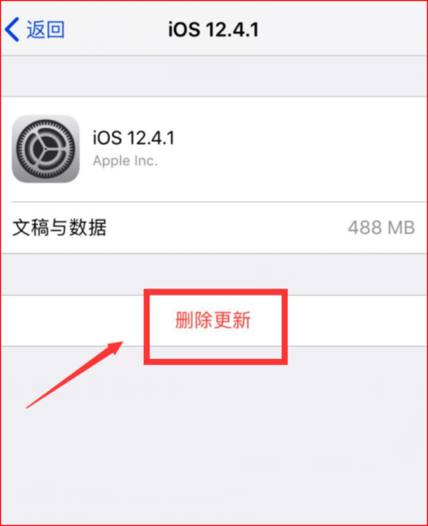 5、进入系统iOS12.4.1,点击下方删除更新;