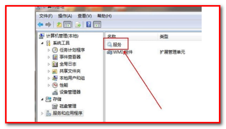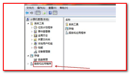 2.打开计算机管理窗口,点击左侧导航上的服务和应用。