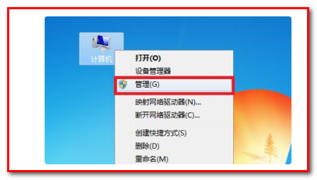 1、右键点自击“计算机”,在弹出的菜单中选择管理,如下图。