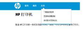 2.将鼠标放在左上角的HP标志后面的第三项“支持”上,会自动出现三个下拉选项,单击选择第一个“下载驱动程序”。