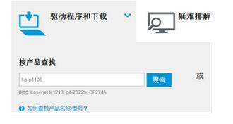 3.在打开的页面里面,在“按产品查找”下面输入“HP P1106”,单击搜索按钮。