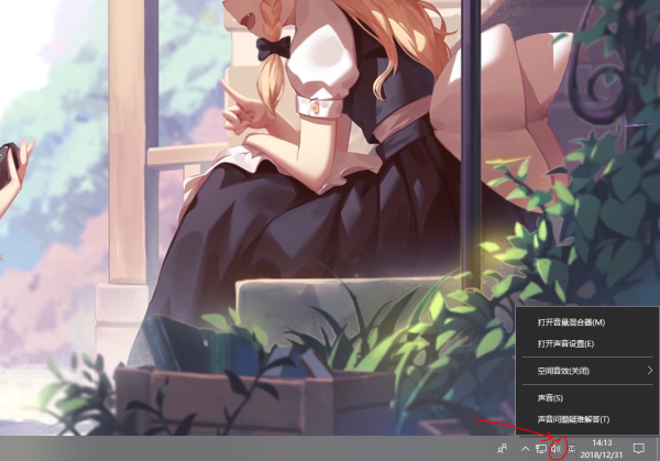 1、在桌面,找到声音控制选项,即为一个喇叭的图标,用鼠标右击它。