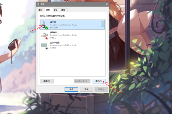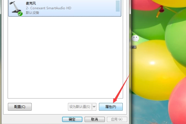 4、先用鼠标左击选定麦克风,再点击属性。