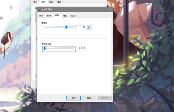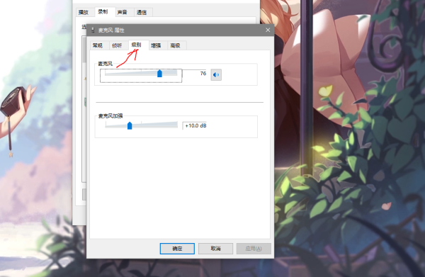 6、调节麦克风默认音量,调到自己认为最适合自己的。
