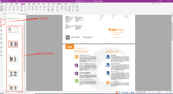 方法一:点击福昕高级PDF编辑器左侧页面栏,拖拽调整需调整的页面。