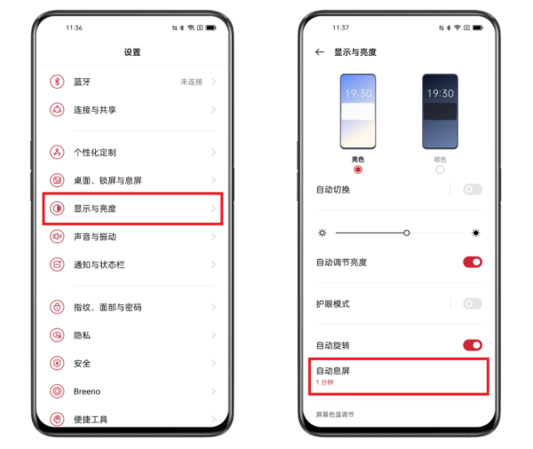 1、缩短自动锁屏时间,不使用时让手机及时息屏;可进入手机「设置 > 显示与亮度 > 自动息屏」中设置;