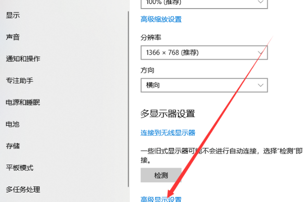 2、把系统的显示设置给唤醒了,打开显示设置页面,直接拉到最底部,点击这里的高级显示设置。