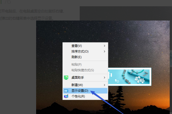 1、打开电脑后,在电脑桌面空白处鼠标右键,在弹出的右键菜单中选择显示设置。