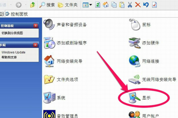 2、在“控制面板”中,拖动滚动条,找到“显示”这一项,双击打开。