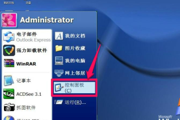 1、开启电脑,进入桌面,在“开始”处打开“控制面板”。