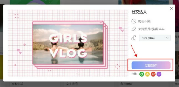点击喜欢的模板,可以对喜欢的模板进行预览效果,确定后点击“立即制作”。