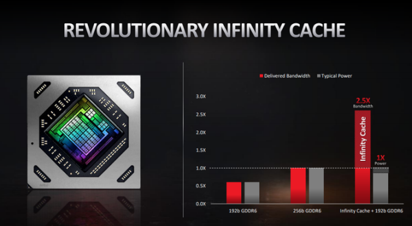 AMD RX 6700XT游戏显卡不仅仅支持光线追踪技术,同样也支持最新的Infinity Cache技术,这样技术是利用超大的高速缓存和带宽,让显卡进行游戏渲染的时候能够提供极其出色的性能,快速访问数据,有效提升显卡整体的性能,6700XT搭载的96MB超大容量的Infinity Cache相当于等效256位 GDDR6带宽的2.5倍,这样的性能提升对于我们日常的游戏来讲,有着绝对的性能提升,并且在功耗表现方面更低,是目前非常领先的一项显卡技术。