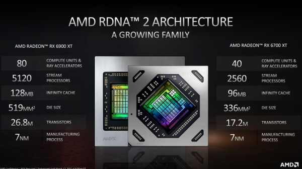AMD全新的RDNA2架构的6000系列显卡发布之时,给所有的游戏玩家一个天大的惊喜,在性能方面,做到了对NVIDIA RTX 30系列显卡的精准狙杀,同时在价格方面占据了绝对优势,不仅如此,7nm的领先制程,让AMD显卡在功耗/性能比方面表现优秀,但是对于大部分的普通玩家来讲,高端的6800、6800XT和6900XT性能着实有些过剩,那么一款针对中端玩家的游戏显卡是这部分用户的刚需。